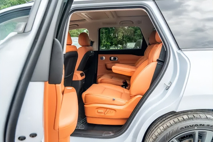 座椅配置方面,主驾支持电动调节与两组记忆功能,副驾亦具备电动调节与一键休息模式。二排座椅除了支持前后滑动与靠背角度调节外,还提供加热与通风功能,高配车型甚至带有按摩功能,能在长途行驶中缓解疲劳。三排座椅可整体放倒,与二排共同形成平整的储物空间,实用性突出。