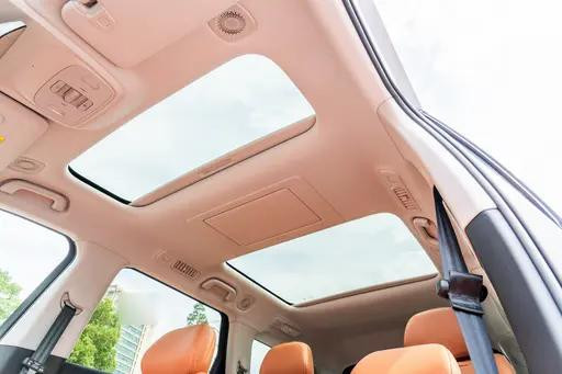 中央扶手箱下隐藏着一个8.1升迷你冰箱,支持制冷与保温模式,夏天放饮料、冬天放奶瓶都十分方便。前排配置两个50W无线充电面板,支持双手机同时快充。车内共设计了28处储物空间,从门板杯架到第三排的小物槽,几乎覆盖了所有乘坐位置。细节之处还包括隐藏式出风口、触感柔和的皮质包覆以及精致的镀铬饰条,使整个座舱在实用之外又增添了一丝高级感。