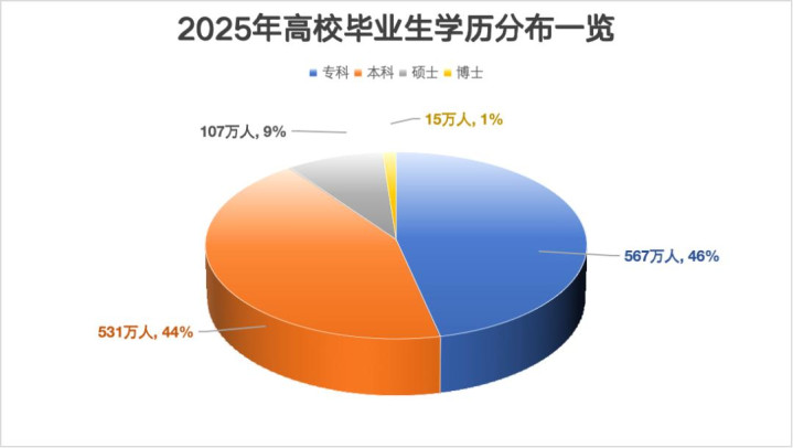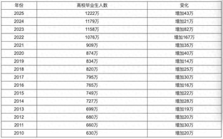 据了解,2025年全国高校毕业生人数约为1222万人,比去年增加了43万人。