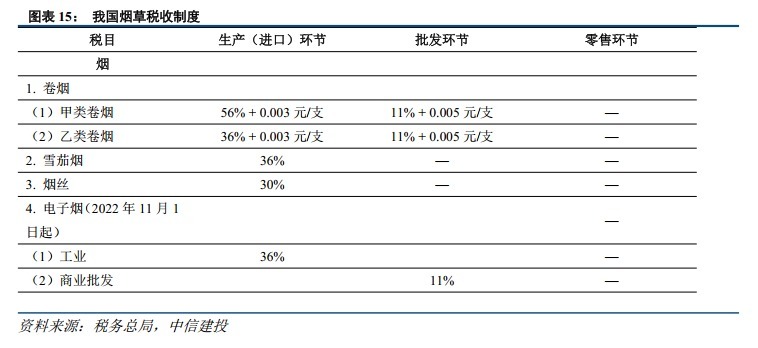 1.2国内烟草税制:以前端征收为主,批发环节补征,税负水平较高且征管稳定