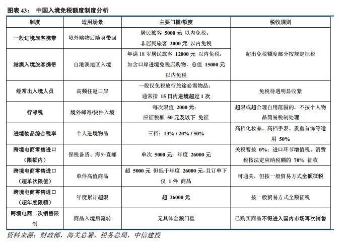 2. 市场普遍认为税改会导致消费外流,我们认为汇率,租金、人力、地缘、监管等都会影响消费决策,仅考虑税改则不足以反映全貌。对高端消费品等跨境替代较强的品类而言,消费者决策取决于境内外价差、渠道便利性和监管强度。2016 年高档化妆品消费税税率由 30% 降至 15%,正是为收敛价差、引导消费回流,未来税制优化仍将综合考虑国内外消费环境,不会盲目上调税率导致价差扩大。后续税改同步推进跨境电商、旅客携带、免税渠道及代购二次销售等环节的规范管理,有望推动部分灰色外流消费回归可追踪、可征管的正式渠道。另外,税改只是其中一个环节,同时要考虑国内外物价、地缘环境稳定性、旅游友好程度等诸多因素。