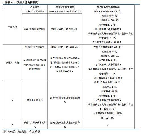 在新型烟草产品逐步纳入监管体系、增量税源有序扩展的同时,既有税基的稳定性亦受到跨境流通渠道的边际影响,其中免税烟草是需要重点关注的环节。烟草制品在旅客进境环节并非简单按一般货值免税,而是实行单独限量管理(海关总署现行规定如下表所示);在制度设计上本就不是面向二次流通,而是面向旅客合理自用。对消费税而言,免税烟草的核心含义在于它构成制度性特殊渠道:如果管理不严,可能形成“免税购买—违规带入—二次销售”的回流链条,对境内正常税负体系形成扰动。也正因此,烟草领域真正值得关注的“漏洞”,主要在走私、免税回流和非法代购,而不在持证卷烟零售体系内部。
