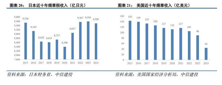从税收表现看,中国烟草税源的稳定性明显强于多数可选消费品税目。结合中、日、美近十年烟草税收数据,中国烟草税收总体波动较小,恢复性较强,显示出较高的税基韧性;日本税收规模维持高位稳定;美国则受税制分散、消费结构变化等因素影响,整体波动和下行特征更为明显。其背后反映的并不只是税率差异,更是制度差异:中国依托专卖体制、集中生产、统一批发和持证零售网络,在税基识别、价格传导和征收落地方面具有更强的确定性。因此从消费税改革角度看,中国烟草税制的核心优势不在于绝对税负水平,而在于前端集中征收、税负传导顺畅、税源稳定可控。