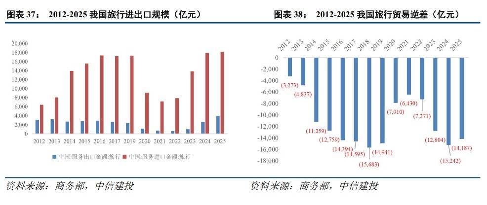 与此同时,入境消费也在修复,商务部披露2025年我国旅行服务出口3939.8亿元,同比增长49.5%,反映“China Travel”带动的来华消费明显改善;但总体看,旅行服务仍是我国服务贸易逆差最大的领域,2025年旅行服务进出口22066.9亿元,其中出口3939.8亿元、进口18127.2亿元,逆差约14187.2亿元,说明我国居民境外消费需求依然显著强于海外居民来华消费,奢侈品、化妆品等高值可选消费仍有相当一部分发生在境外。对高端消费品而言,奢侈品、美妆等部分购买行为仍在境外完成,境内提高税率未必能同步转化为境内税收增加。