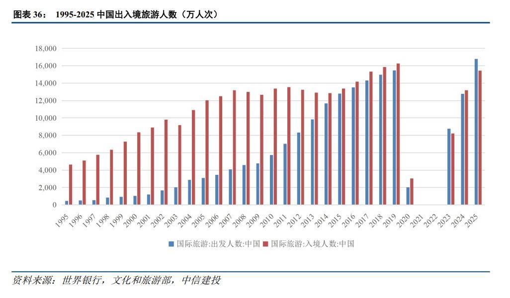 高端消费品的税基变化,与跨境人员流动、旅行服务逆差以及境内外价差收敛密切相关。2023年以来,我国出入境旅游明显修复。2023年入境游客8203万人次,内地居民出境旅游8763万人次;2024年分别升至1.32亿人次和1.23亿人次;2025年进一步升至1.55亿人次和1.68亿人次,延续恢复态势。整体看,跨境人员流动修复较快,居民境外消费场景同步恢复,高端消费品税基面临一定跨境分流压力。