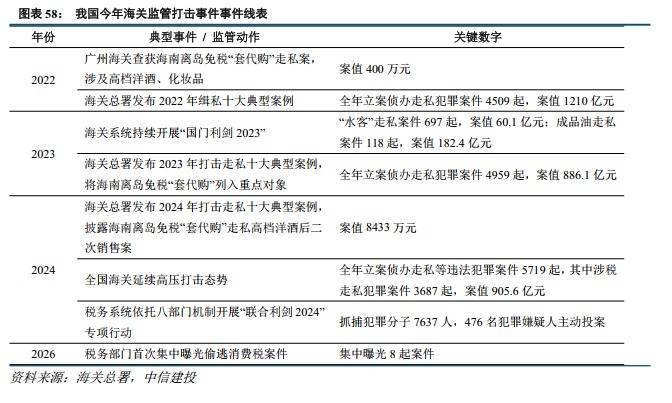 2. 重点偷漏税及灰色渠道整治力度加强:代购、走私、低报瞒报、二次销售等违规链条加速出清,有助于压缩灰色套利空间,提升正式渠道和合规经营企业的相对优势,进而催化免税、旅游零售及高端消费品合规零售龙头的估值修复与股价上涨;